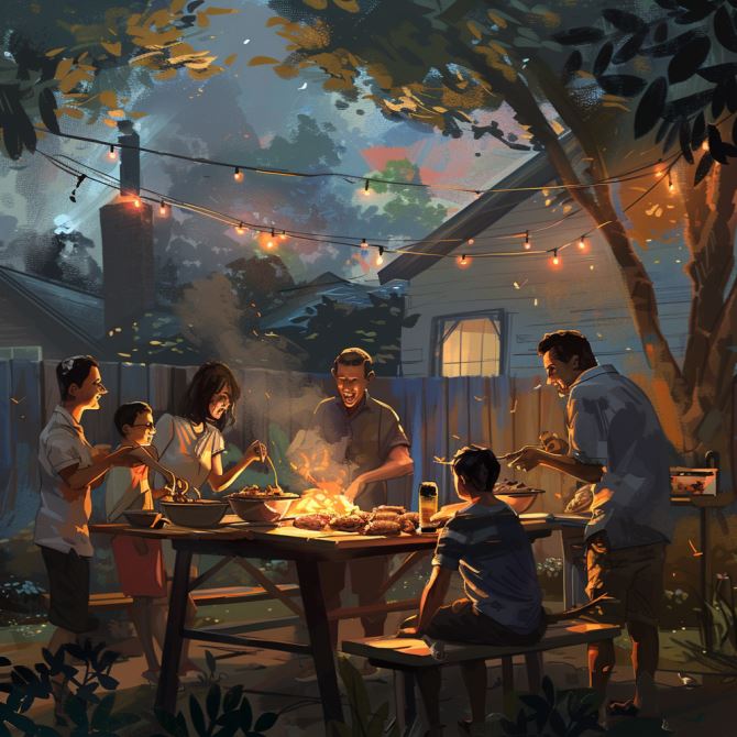 모임이 끝날 무렵, 찰리는 가족들과 함께 마당에서 바비큐 파티를 열었습니다. 그들은 함께 음식을 만들고, 미래에 대한 꿈과 기대를 나누며 웃었습니다. 찰리는 그 순간을 바라보며, 자신이 선택한 길이 옳았다고 확신하게 되었습니다. 그의 부모님이 남긴 유산은 이제 새로운 형태로 가족 간의 사랑과 유대를 강화하는 매개체가 되었습니다.