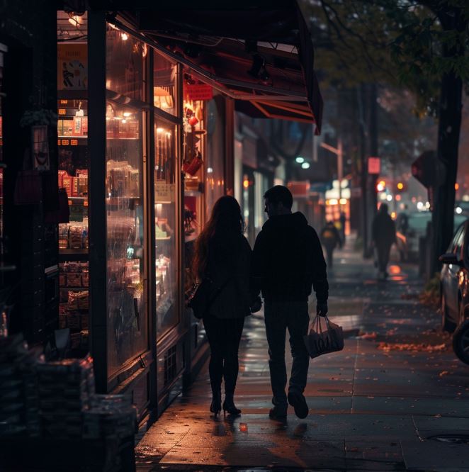 알렉스와 줄리는 길게 이어진 산책을 마치고 은은한 가로등 불빛 아래로 돌아왔다. 저녁의 서늘한 공기가 두 사람의 얼굴을 살짝 스쳤고, 주변의 오래된 건물들이 그들의 대화에 조용히 귀를 기울이는 듯했다.