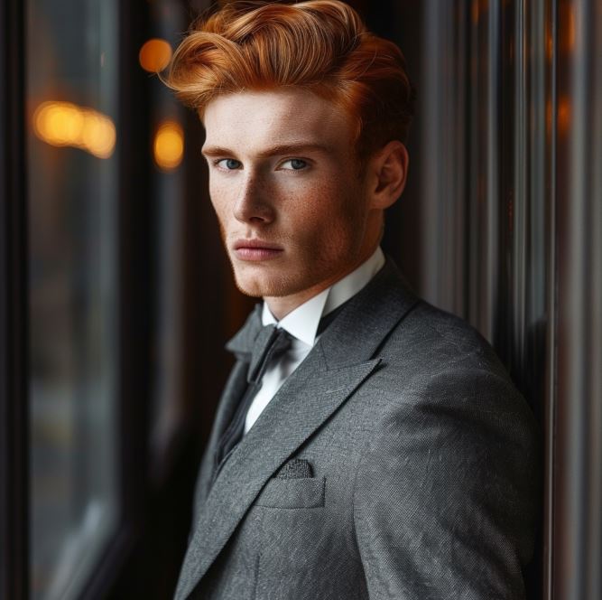 베를린의 날씨는 그날따라 유난히 쌀쌀했지만, 알렉스의 마음은 뜨거웠다. 유명한 명품 브랜드의 수석 디자이너로서 그의 삶은 항상 분주하고 화려했다. 알렉스는 연한 붉은 머리카락을 단정하게 포마드로 넘긴 채, 고급스러운 회색 양복을 매끈하게 차려입고 있었다. 그의 곁을 지키는 것은 충성스러운 애완견, '맥스'였으며, 그의 애정 어린 눈빛은 항상 주인을 향해 있었다.