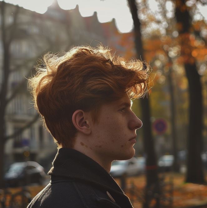 알렉스는 독일 베를린의 아침을 거닐고 있었다. 연한 붉은 머리카락은 가을 햇살 속에서 반짝이며, 그의 단정한 포마드 헤어스타일은 바람에도 흐트러짐 없이 완벽했다. 그는 명품 브랜드의 수석 디자이너로서의 삶과 함께, 개인적인 재테크에도 깊은 관심을 가지고 있었다. 188cm의 키에 멋진 몸매를 가진 그는 오늘도 그의 크림색 트렌치 코트를 걸치고, 세련된 가죽 구두를 신고 거리를 걸었다.