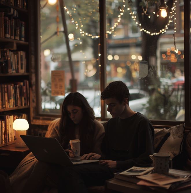 그 뉴욕의 책방에서, 따스한 조명 아래 데이브는 노트북을 펼치고 앉아 있었다. 조지아는 그의 옆에서 소리 없이 커피를 마시며 가끔씩 화면을 들여다보았다. 데이브가 조명된 글자들 사이에서 경제의 흐름을 파악하려 애쓰는 동안, 바깥에서는 저녁의 어스름이 깊어만 갔다. 가로등 불빛이 차례로 켜지며 길거리는 부드러운 금빛으로 물들었다.