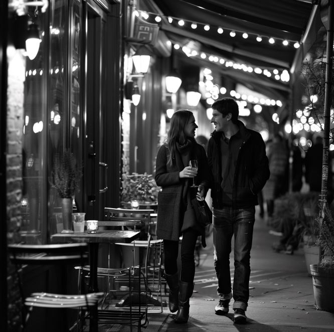 데이브와 조지아는 레스토랑에서 나와, 조용한 거리를 걸으며 그날의 경제 뉴스와 개인적인 투자에 대한 대화를 계속 이어갔다. 그들이 지나가는 거리의 가로등은 희미하게 불을 밝히고 있었고, 가을의 찬 바람이 두 사람의 대화에 은은한 리듬을 더했다. 데이브의 마음은 조지아와의 대화에서 새로운 영감을 받아 한층 더 들떠 있었다.