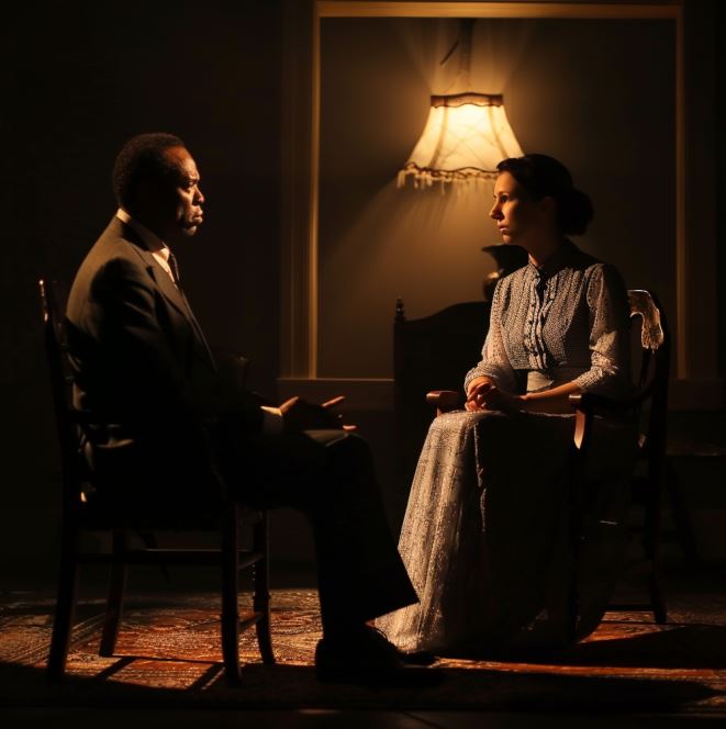 스튜디오의 긴장감은 절정에 달했습니다. 벽은 짙은 회색과 미드나잇 블루의 세련된 조합으로, 강렬하면서도 진지한 논의의 분위기를 반영했습니다. 부드러운 조명이 엘리자베스 박사와 제임스의 얼굴을 비추며 그들의 심도 깊은 대화를 더욱 드라마틱하게 만들었습니다.