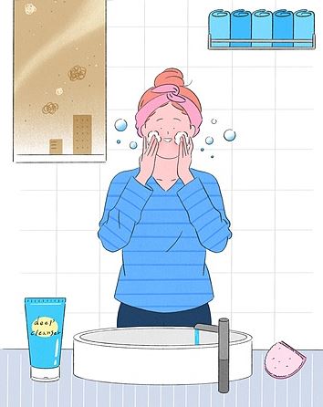 너무 뜨거운 물을 사용하지 않고 온도를 아주 미지근하게 맞춰 세안을 하고, 부드러운 세안제로 피부를 매일 깨끗하게 해줘요.