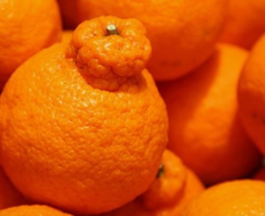 외형: 크기가 중간에서 큰 편이며, 꼭대기에 둥근 혹 같은 특징적인 모양이 있습니다. 껍질은 오렌지색이며, 두껍고 벗기기 쉽습니다.