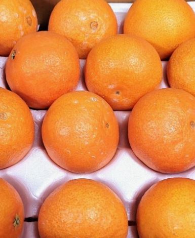 외형: 황금향은 오렌지보다 작은 크기에, 밝은 오렌지색을 띱니다. 껍질이 얇고 부드러워 까기 쉽습니다.