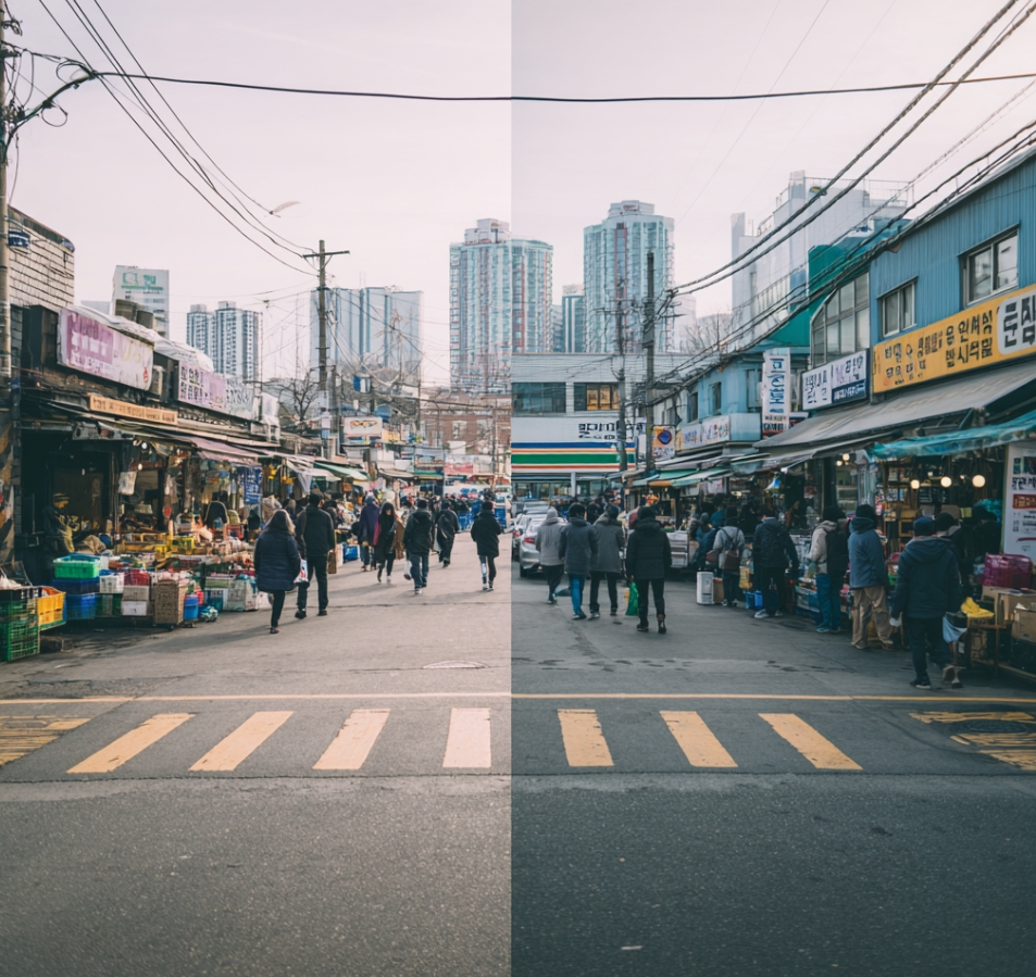 대한민국 유통 시장은 오랜 시간 동안 두 축으로 나뉘어 공존해왔습니다. 한쪽은 오랜 역사와 지역 공동체의 온기를 간직한 전통시장, 다른 한쪽은 시스템과 자본, 효율성을 기반으로 확장한 대형마트입니다. 과거에는 이 둘이 서로 다른 소비층을 대상으로 상호 보완적 역할을 해왔지만, 최근 들어 생존을 건 경쟁 구도로 재편되고 있습니다.